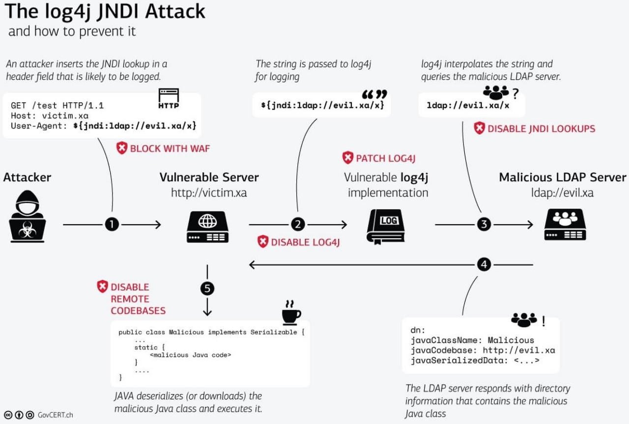 ->> Log4j 유틸리티에는 JDNI라는 디렉터리 서비스를 사용하기 위한 LDAP 쿼리가 가능한 API가 있는데 공격자는 이를 악용할 수 있다' 는 말이다. 참고로 LDAP만 얘기했지만 LDAP 이외에 rmi, dns 등 다른 프로토콜로도 악용 가능하다.