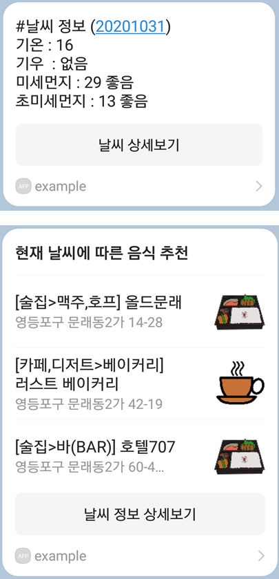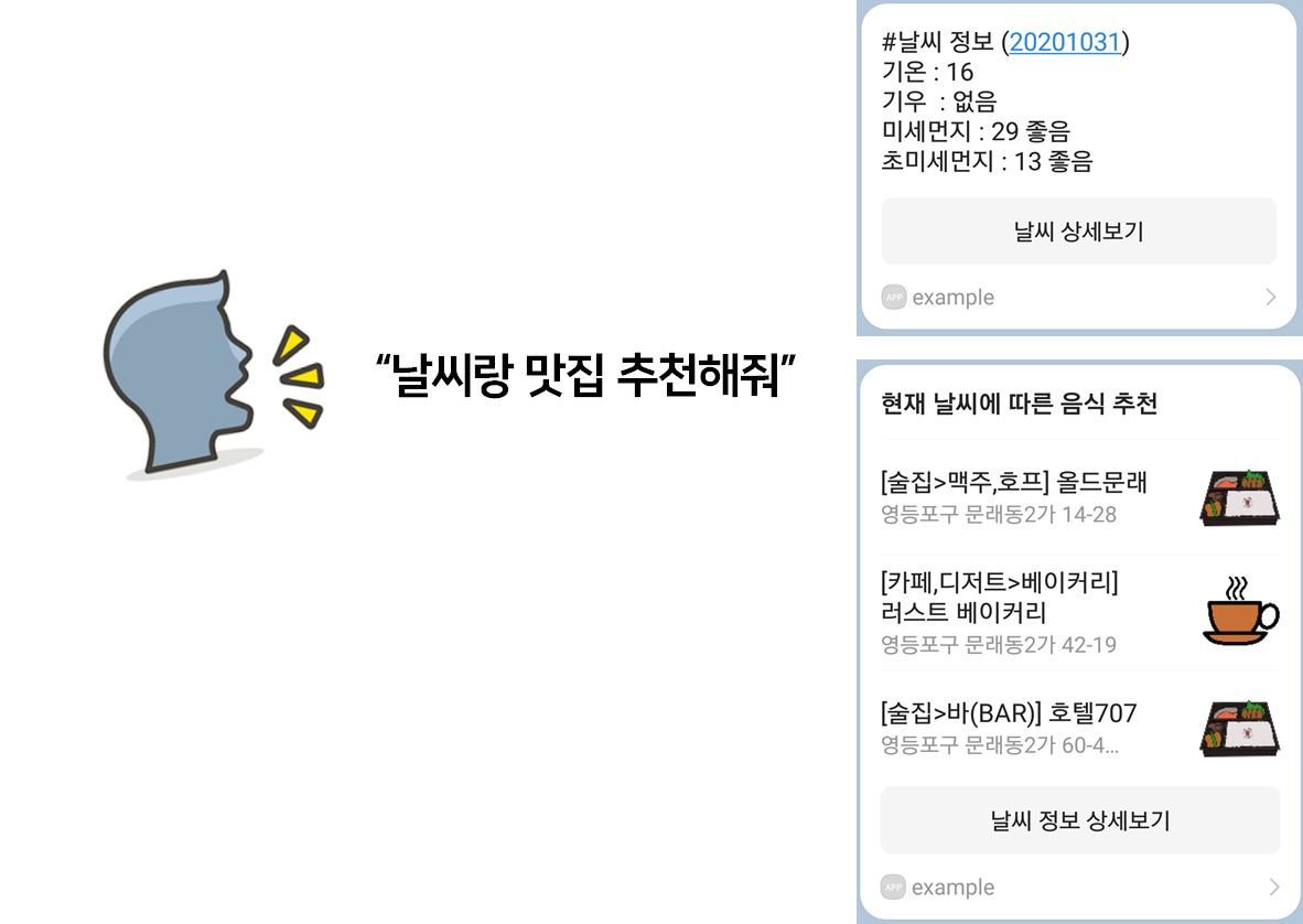 명령어 : 날씨랑 맛집 알려줘