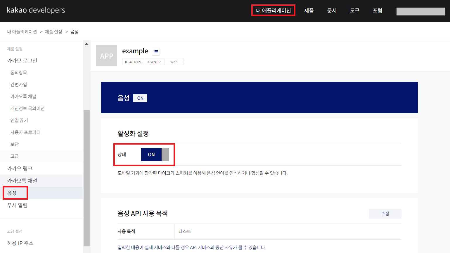 [그림 11] 애플리케이션에 음성기능 활성화