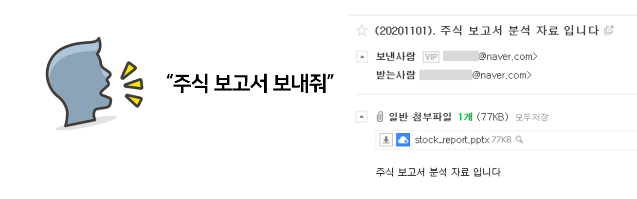 음성 인식 결과 : 주식 보고서 보내줘