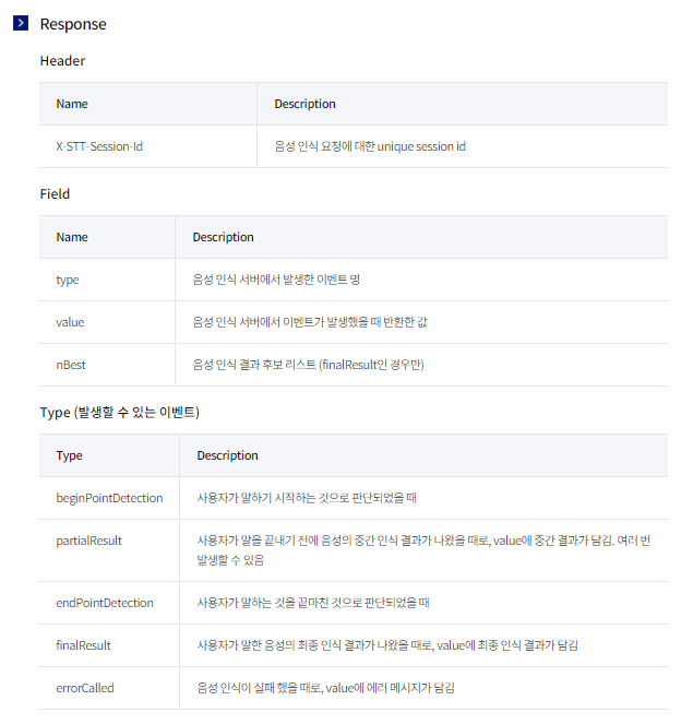 [그림 15] 음성인식 Response 설명