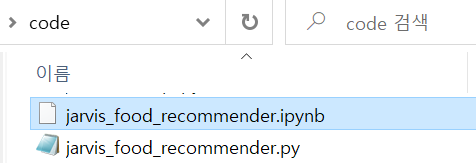 food_recommender.ipynb 파일을 복사하고, jarvis_food_recommender.ipynb로 이름을 변경하고 이제부터는 jarvis_food_recommender.ipynb 파일로 작업을 하겠습니다.