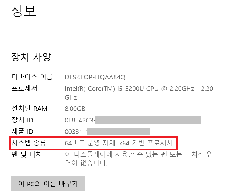 [그림 9] PC 정보로 검색 / [그림 10] 시스템 종류 확인