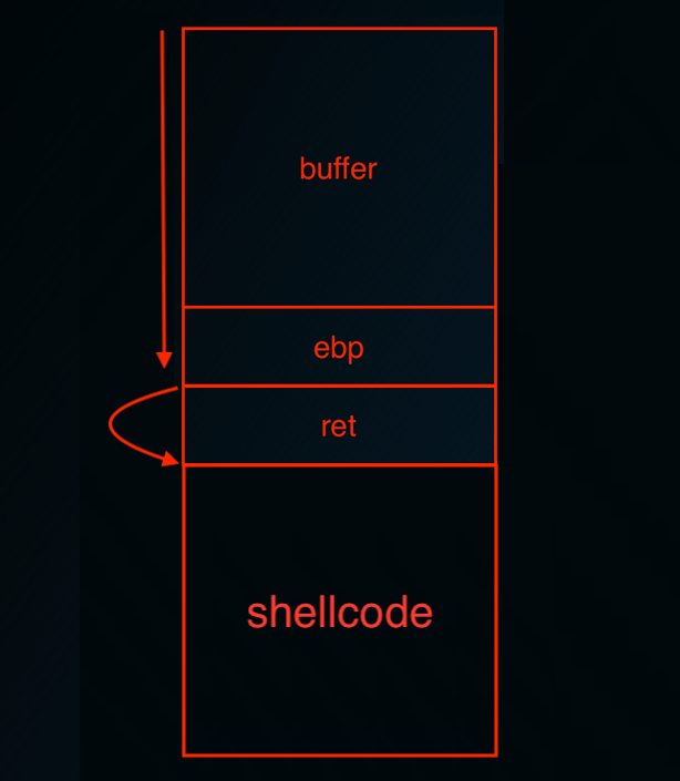 buffer를 가득 채우고, ret에 도달했을때 스택에 있는 shellcode를 실행시킬 수 있는 주소로 점프해주기만 한다면 원하는 쉘코드를 실행시킬 수 있다.
