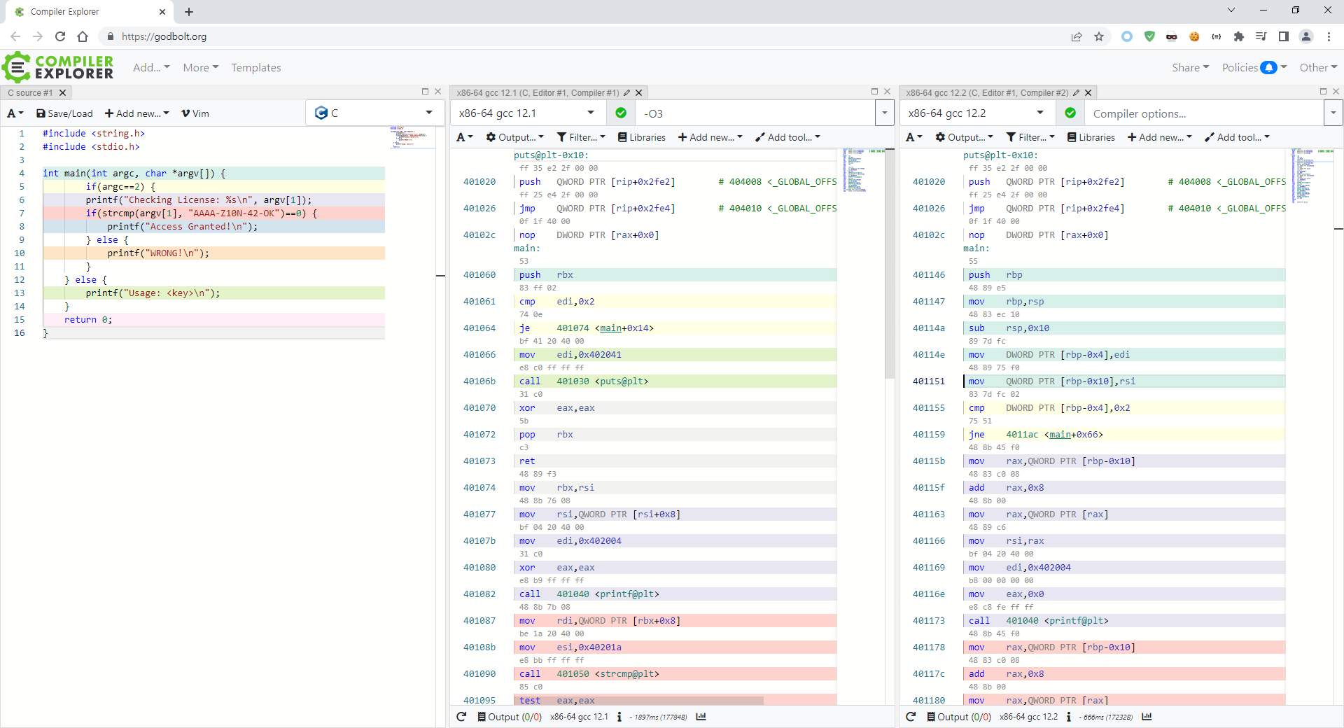 if(strcmp(argv[1], "AAAA-Z10N-42-OK")==0) {
