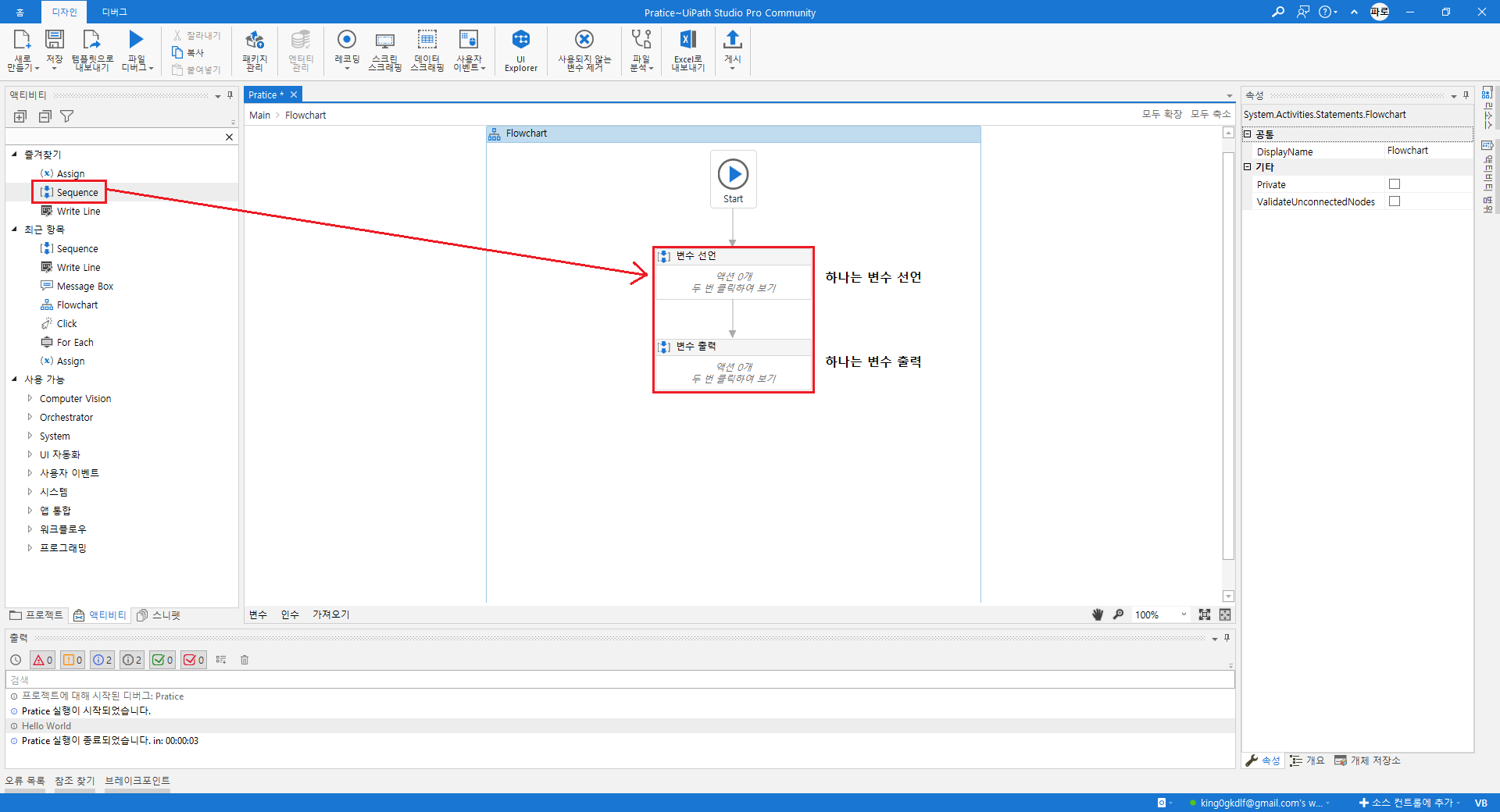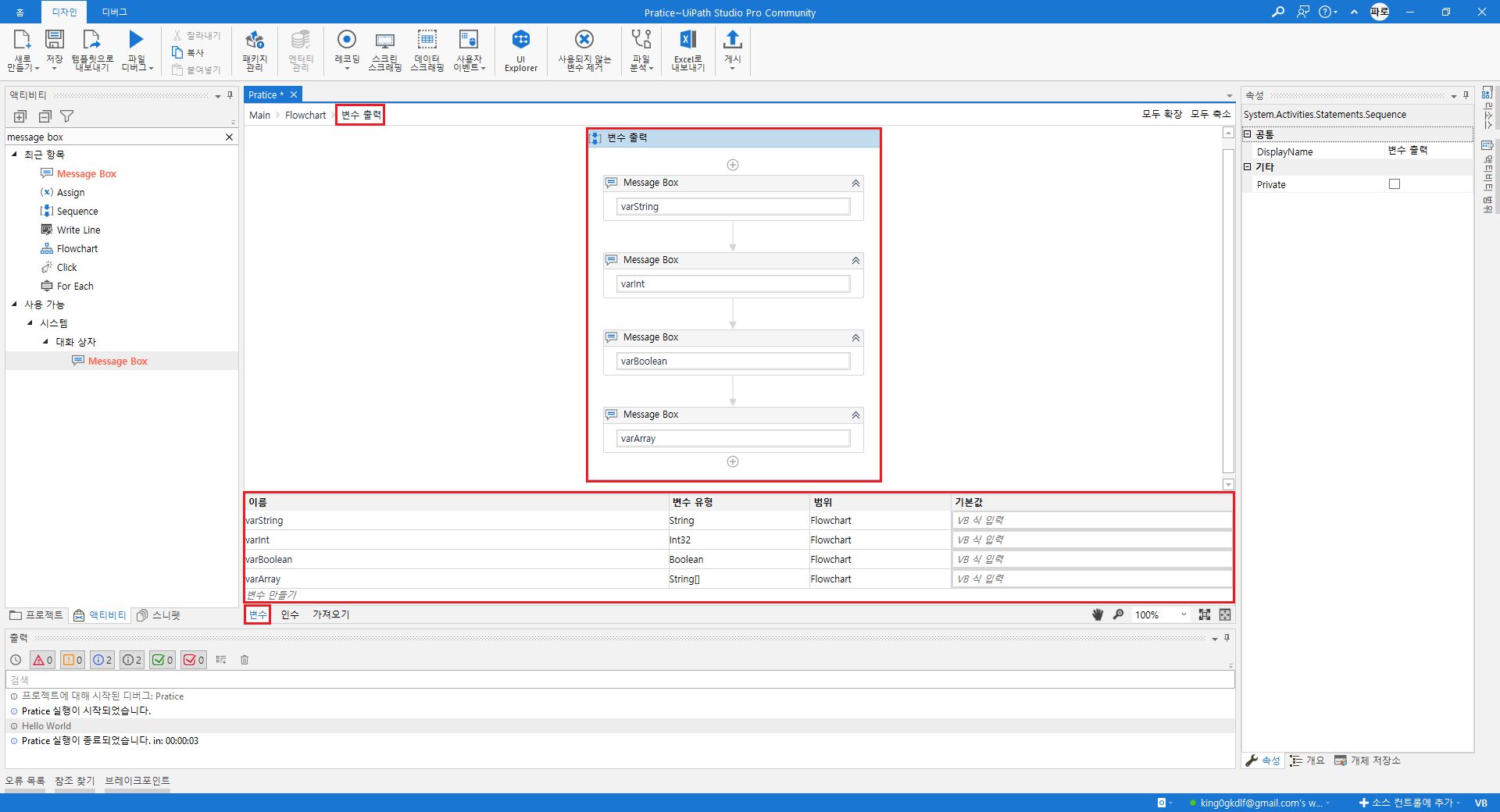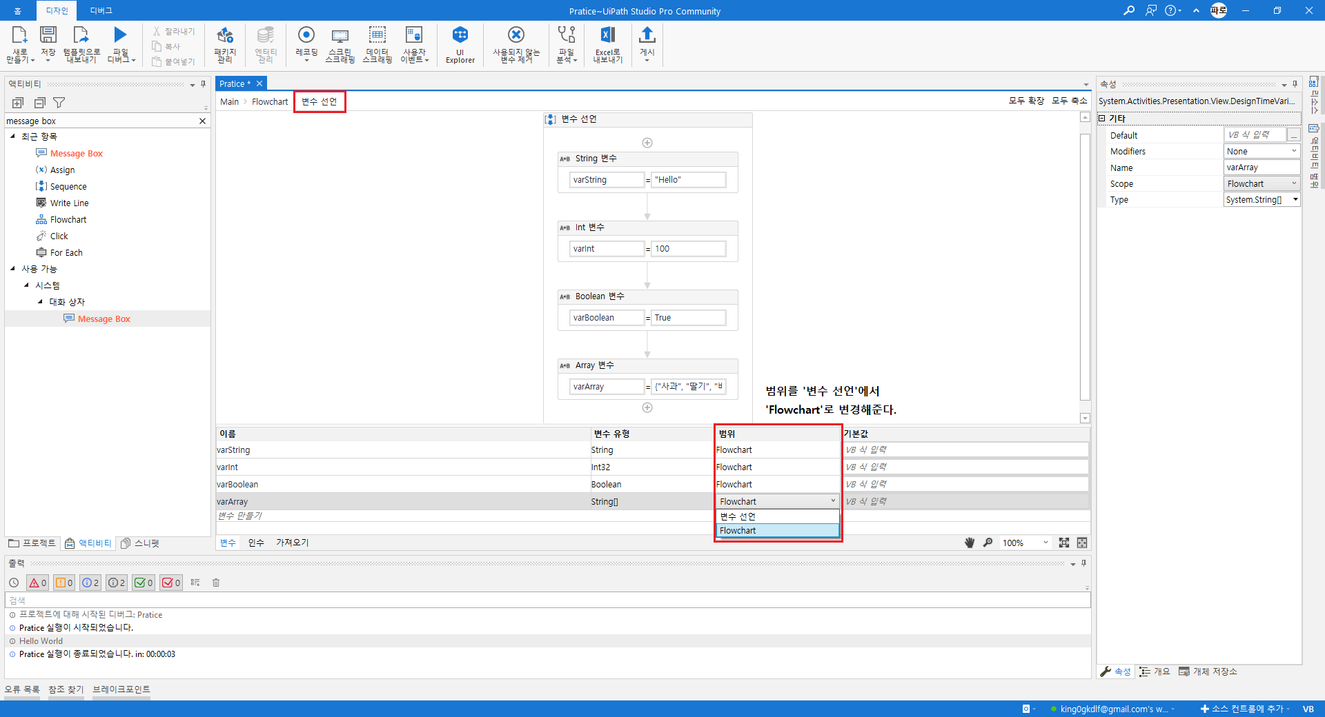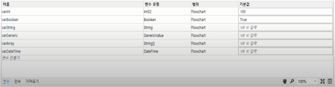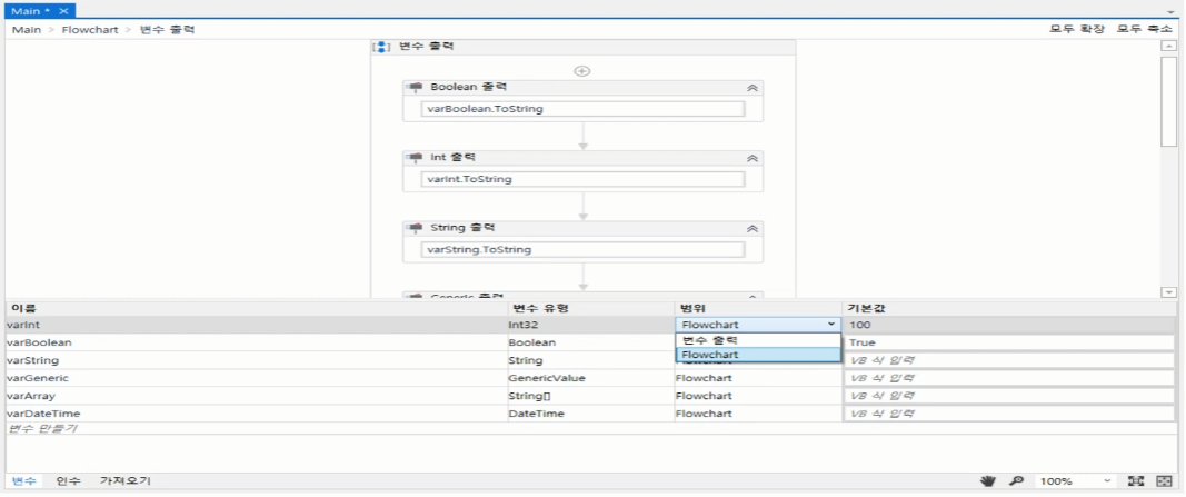 모든 변수 범위를 'Flowchart' (최상위)로 변경해준다.