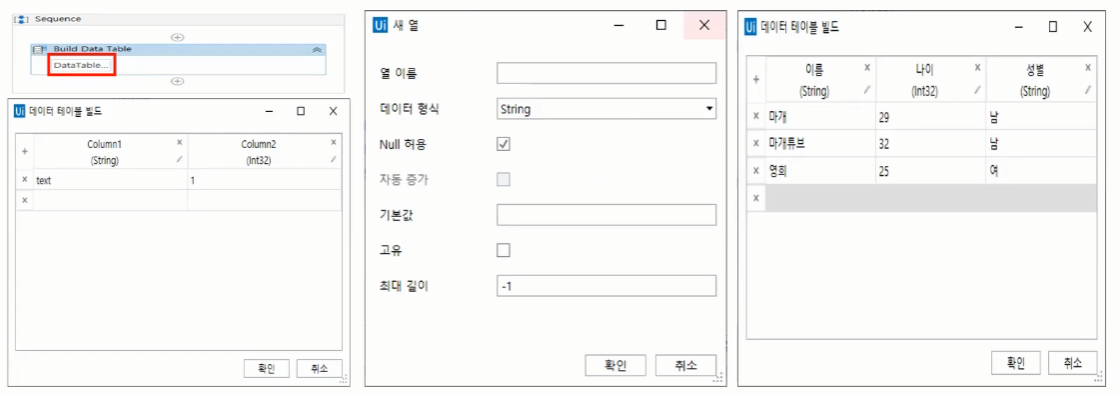 UiPath에서는 많은 종류의 데이터를 사용함.