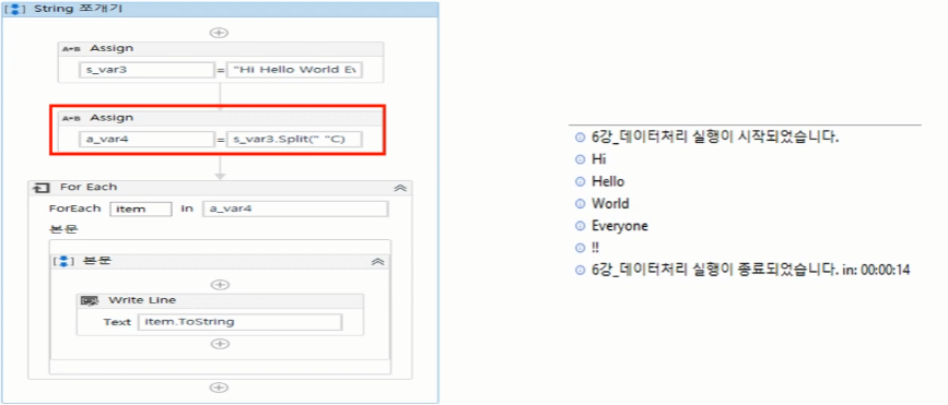 = 's_var3 = "Hi Hello World Everyone !!"에서 '(" "C)'의 조건에 의해 띄워쓰기를 기준으로 쪼갠다.