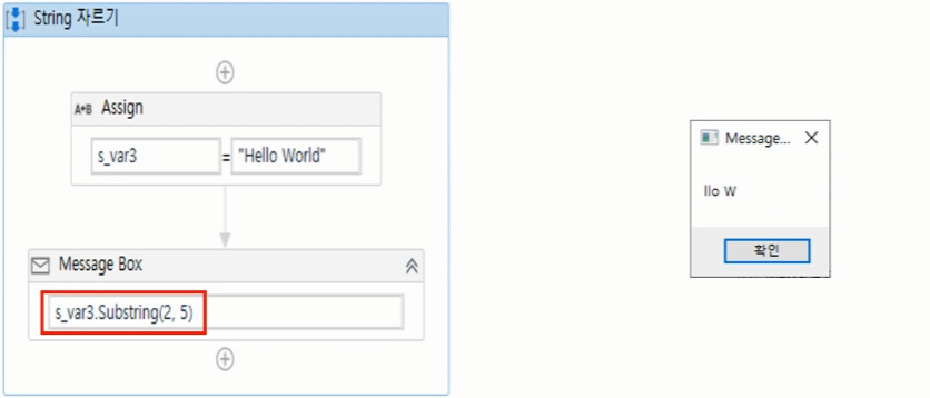 -> 문자열(변수).Substring(시작 Index, 자를 만큼의 글자수)
