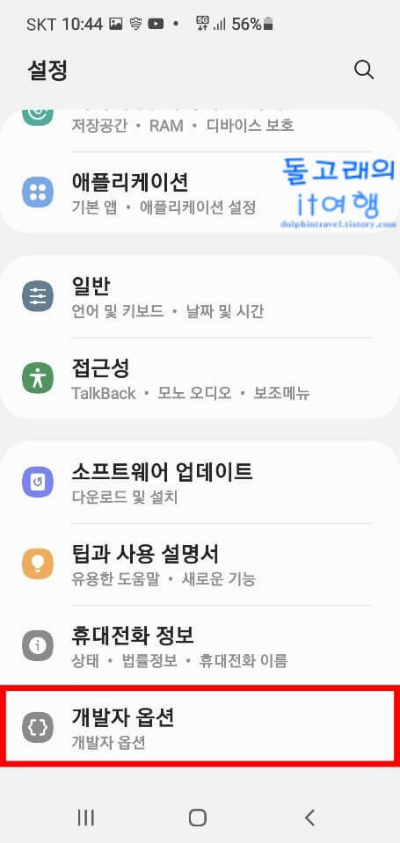 4. [개발자 옵션] 메뉴 터치
