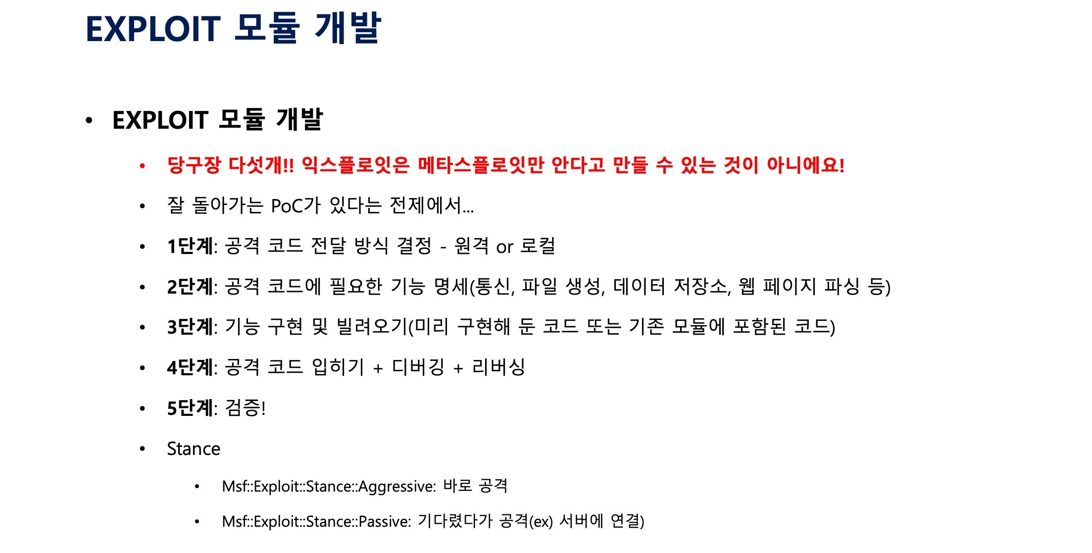-> 익스플로잇 모듈 개발이라고 별 다를것은 없다. 위의 1~5 단계 과정을 보면 된다